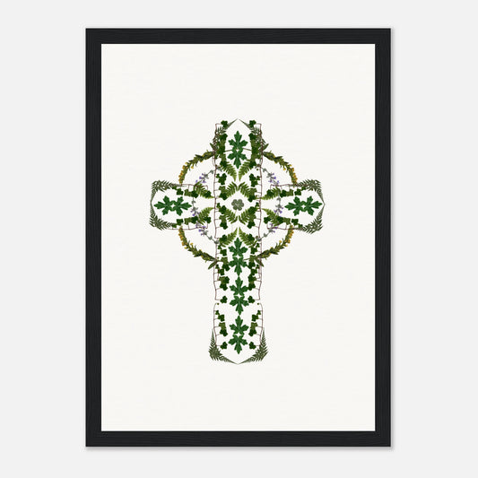 Celtic Cross Pressed Flowers Framed Poster – Museum Quality Art Print