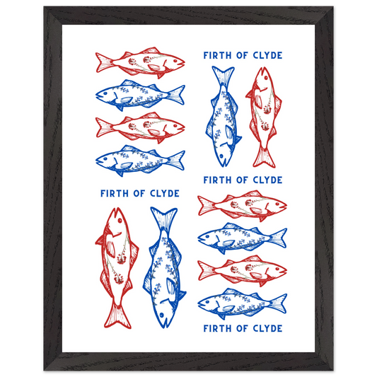Firth of Clyde Framed Poster – Red & Blue Floral Fish Design